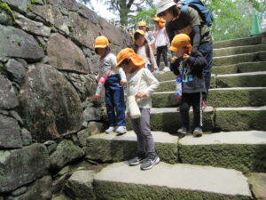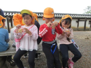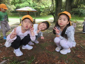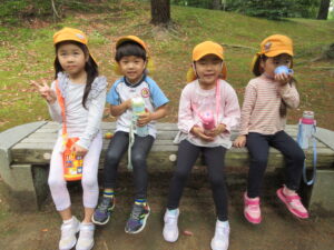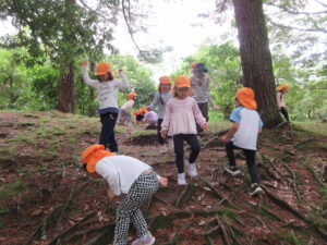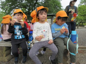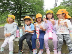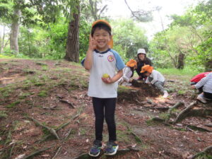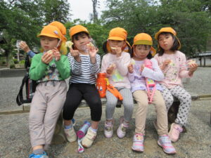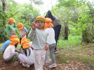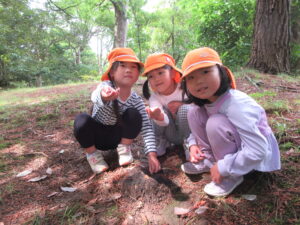 6月9日(金)に椿谷公園までお散歩に行きました。城山までの道のりも少しずつ覚えてきた子どもたちです。公園では梅の実を見つけたり、大きな木に触れたり、大好きな虫探しをしたりして楽しみましたよ。いっぱい歩いて園に帰っておいしい給食をモリモリ食べました🍴