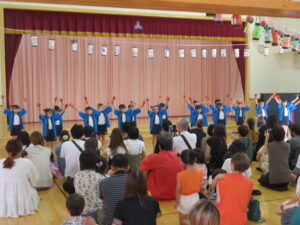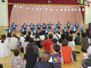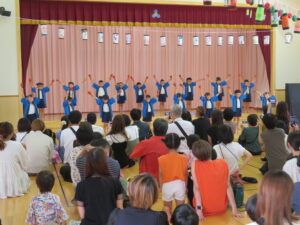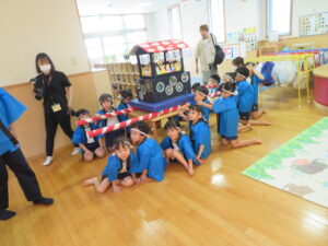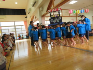 今日は待ちに待った夏祭り~♪まずはオープニング☆げんきいっぱい「わっしょい、わっしょい」大きなかけ声でおみこしの練り歩きをしてくれたぞう組さん。たくさんのお客さんの前で「よっしゃ!」とキレッキレのよさこいも披露してくれました(^-^)かっこよかったですね。