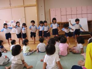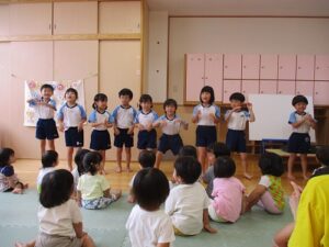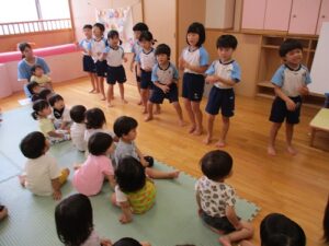 7月11日にりす・うさぎ組の誕生会がありました。ぞう組さんから踊りのプレゼントを披露してもらったり、先生からのお楽しみでパネルシアターを見たりしましたよ。7月生まれさんお誕生日おめでとう!