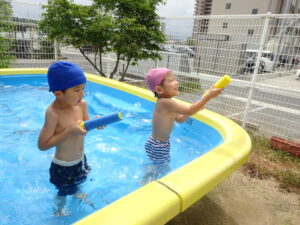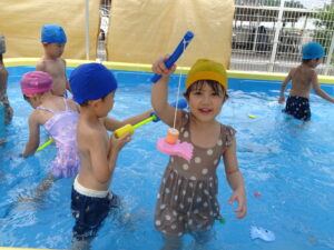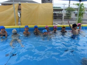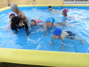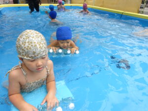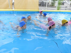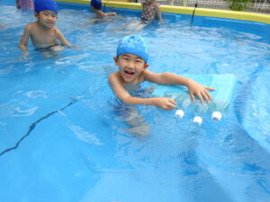 2023.09.08 プール楽しかったね♪(きりん組) プール遊び楽しかったね。水にもすっかり慣れて、顔つけをしたり、ビート板を使って泳いだり、ワニさん歩きをしたりして楽しみましたよ💗 < 前の記事へ | 次の記事へ >