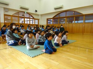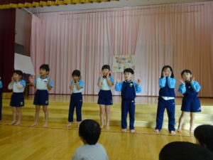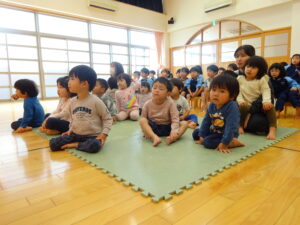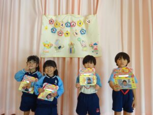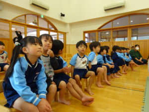 11月21日(火)にうさぎ組と幼児部の誕生会がありました。園長先生のお話で秋のおいしい食べ物クイズを聞いたり、ぞう組さんからの出し物で踊りを披露してもらったりしましたよ。11月生まれさんお誕生日おめでとう!