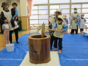 子どもたちも一人ずつおもちつきをしました♡