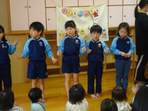 2月14日(水)にひよこ、りす組の誕生会がありました。ぞう組さんからのプレゼントはりす組さんが大好きな「チョコチョコチョコレート」の手遊びでした💗 みんな楽しそうに口ずさんだり真似をしたりしていましたよ。先生からの出し物は「とんとんとん どなたです?」のパネルシアターで、色々な動物さんが出てきてケーキでお祝いをしてくれました!2月生まれさんお誕生日おめでとう!
