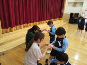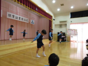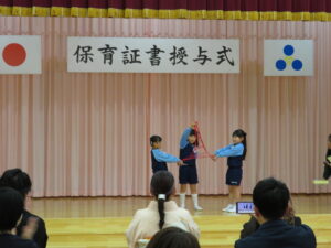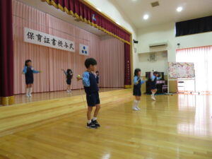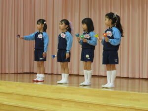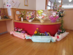 3月15日ぞう組さんの育了式が行われました。18名の園児たちが無事育了し、4月からはそれぞれの小学校へと巣立っていきます。育了式はみんなドキドキした様子でしたが、1人ずつ大きな声で「ありがとうございます」と言いながら保育証書をもらい、とても感動的な式になりました。二部の得意なこと発表では笑顔も見られ、保護者の方に得意なことを嬉しそうに披露していましたよ💛そう組さんの成長が感じられてこちらも温かい会になりました。ぞうぐみさんいくりょうおめでとう!保護者の皆様、お子様の育了おめでとうございます。祝詞・祝電。お花にバルーン、たくさんの方にお祝いしていただき、ありがとうございました。