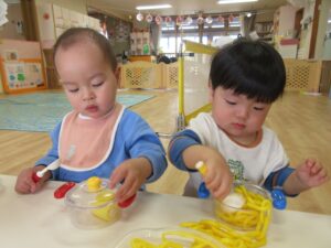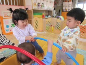 お部屋では、様々な玩具や面白そうな遊びを見つけて楽しんでいますよ♪