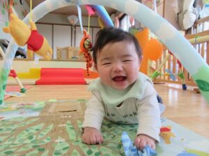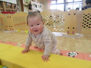 お腹が空いたら泣いて教えてくれたり、目が合うと笑ってくれたり、楽しいことを見つけたらずり這いやハイハイで行ってみたりと、少しずつ自分のペースでのびのびと過ごす姿に嬉しく思います♪