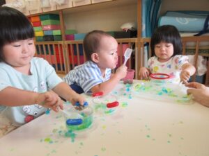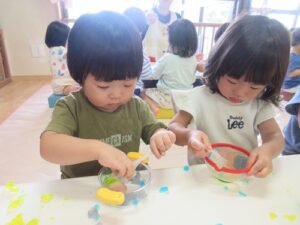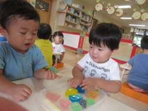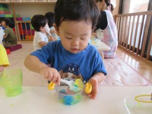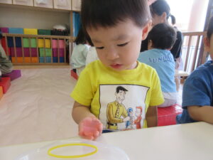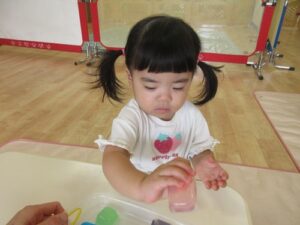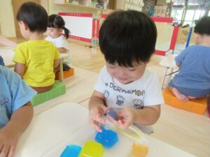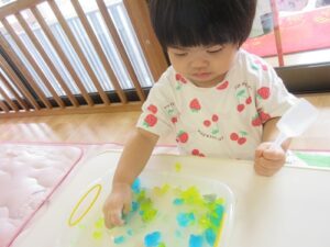 ぷにぷに・つんつんと指や手のひらで感触を確かめながら遊ぶ姿がたくさん見られましたよ♪