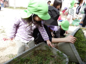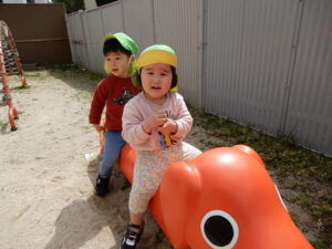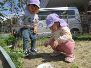晴れた日には、帽子を被って園庭に出掛けていますよ♪