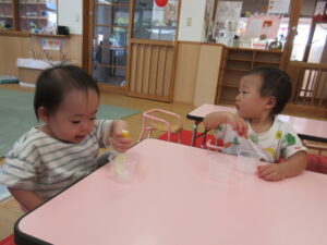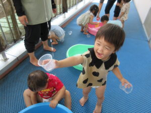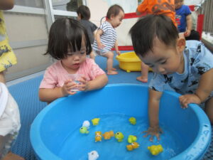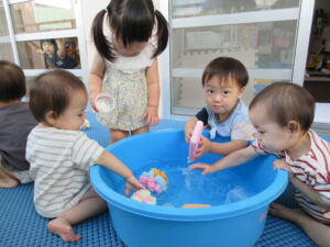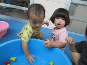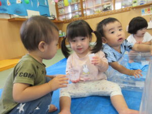 2024.08.23 りんご組さんの夏あそび🌻 ◎つめた~い氷をさわってみたよ♪ ◎お水ちゃぷちゃぷ きもちがいいね♪ 暑い日が続きますが、ひんやりとしたものに触れて気分はさっぱり♪「あっ!」と声を出して驚いたり、水面をたたいて「きゃぁ~」と喜んだり・・・一人ひとりの反応がとってもかわいいりんご組さんですよ🍎まだまだ暑い日が続きそうなので、みんなで元気に過ごしたいと思います。 < 前の記事へ | 次の記事へ >