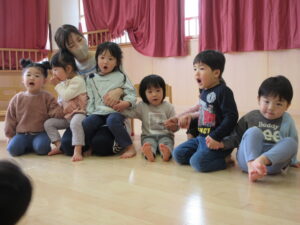 2歳児のぶどう組さんとめろん組さんは4月からおとなりの本園さんに進級します。乳児保育園で過ごすのもあと少し・・・