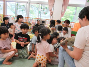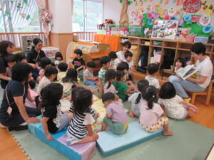 2歳児クラスの保護者の方が“おはなし隊📖”で絵本の読み聞かせに来て下さいましたよ~。“どんなおはなしかな~?”とわくわくした表情で集まる子どもたち♬保護者の方の優しい声にじーっと夢中でみていましたよ。保護者の方の“おはなし隊📖”随時募集中です。いつでもご参加下さいね!!