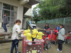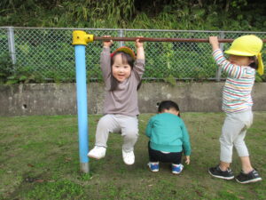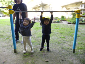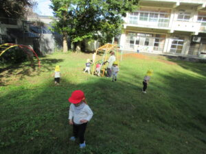 秋晴れが気持ちがいいですね♪1歳児クラスのばなな組さんとりんご組さんが近くの雑賀幼稚園におさんぽに出かけましたよ~!