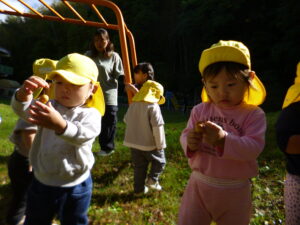 あっちに行ったりこっちに来たり・・・興味津々であそぶ子どもたちでしたよ。思いっきり身体を動かして楽しいおでかけになりました🍂またおさんぽに行こうね~♪