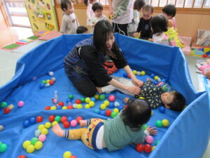 「いっしょにあそびうね」「大丈夫だよ」と先生たちにしっかり受け止めてもらいながら過ごしています。