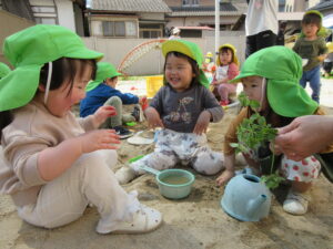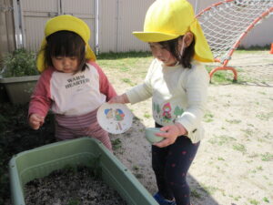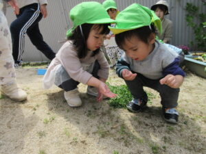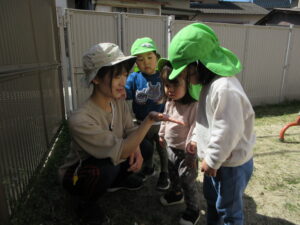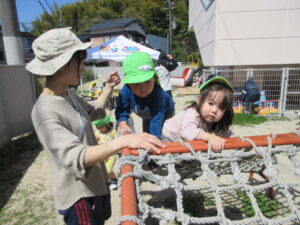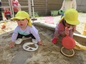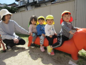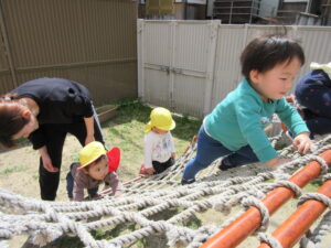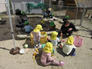 園庭をのぞいて見ると・・元気にばなな組さんとめろん組さんが遊んでいましたよ~