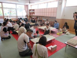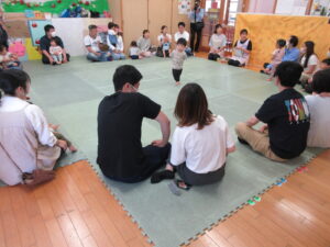 子どもたちが今保育園で楽しんでいる遊びをおうちの方と一緒に遊んでもらいました