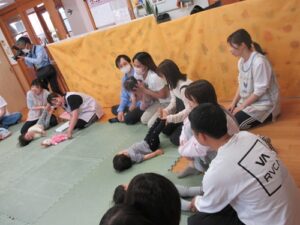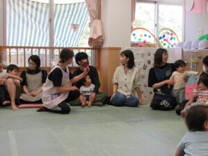 先生たちの歌声に合わせて、‶たかい たかい″や‶こちょこちょ″をしてもらいました。