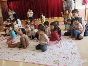 こいのぼりさんと仲良しの5月の誕生児さん!名前を呼ばれて椅子に座り、みんなでお祝いしました✨
