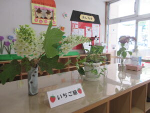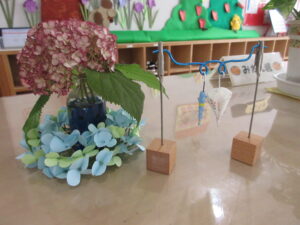 保育園の玄関にも紫陽花の花がきれいに咲いています。