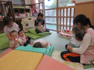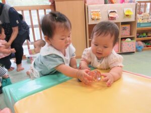0歳児クラスのいちご組さんのお部屋を覗いてみましたよ~