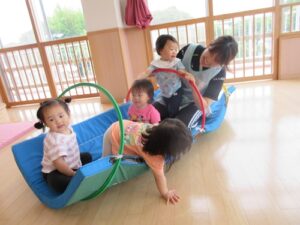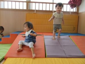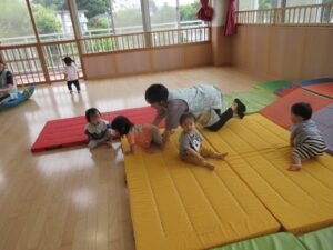 2025.06.11 りんご組さ~ん🍎どこ行くの~? 6/11(水) “よいしょっよいしょっ”と階段を上がって行くりんご組さん。 みんな足をしっかり踏ん張って、ハイハイでのぼって着いたところは・・ ひろ~い遊戯室!✨ 斜面が楽しくて・・何度もそれ~っ♪ みんなでゆらゆら~♡おっとっとっと・・おもしろいね~ あれ~?お外が見えないね~? いっぱいあそんだりんご組さん🍎 お部屋に戻ってお茶タイム・・ たくさん身体を動かして遊んだね♪楽しかったね♡ < 前の記事へ | 次の記事へ >