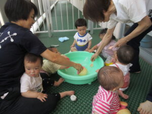 6/19(木) いちご組さんとりんご組さんが水遊びをしました♪