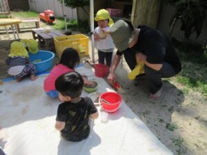 氷や水遊びしたよ~冷たくてきもちがいいね♪