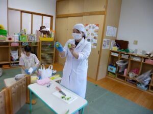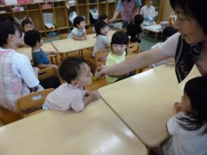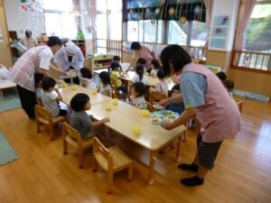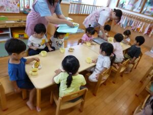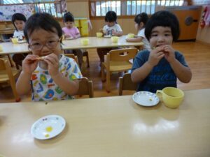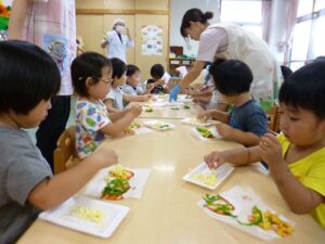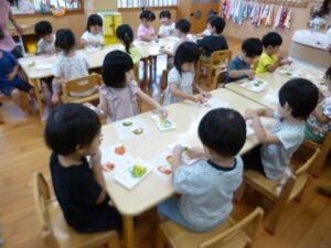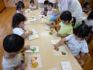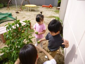 8/27(水)園庭で育てていたピーマンを収穫して、