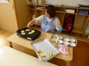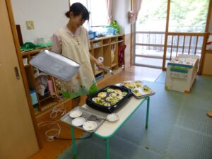 できたかな~?ホットプレートで焼くよ~