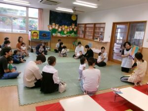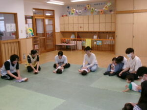 先生の歌声や絵本の読み聞かせが始まると少しずつ笑顔が出てきて、体も動きだしていましたよ✨