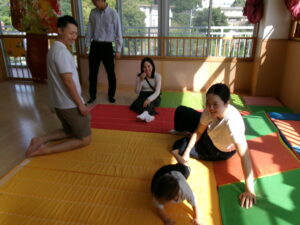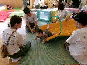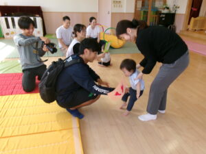 ‶みてみて″というように体を動かして行きたいコーナーへ向かい、お父さんお母さんと一緒に遊ぶいちご組さんでしたよ!