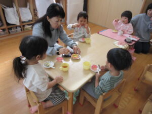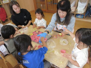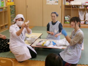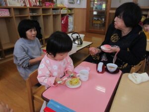 焼いている間におばあさんたちといっしょに遊んだよ~✨