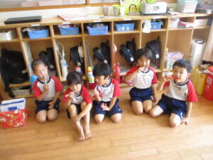 お話の後に3つのお約束を守りながらはみがきをする子どもたちでした。