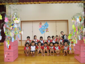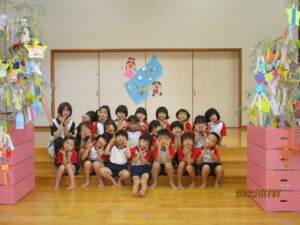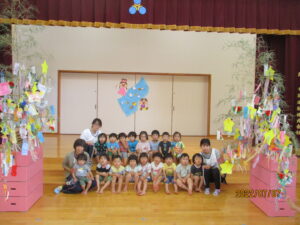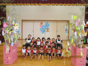 2022.07.21 七夕会をしたよ♪ 7月7日に七夕会をしました。七夕のお話を聞いたり、歌ったりとみんなで七夕の日を楽しみましたよ!みんなのお願いごとが叶いますように♡ < 前の記事へ | 次の記事へ >